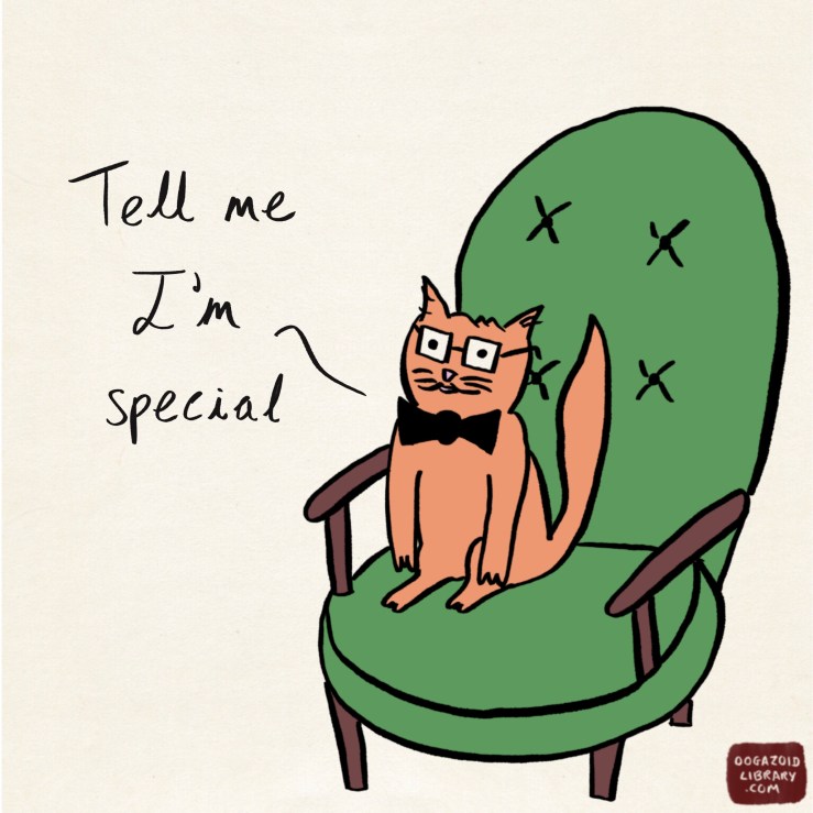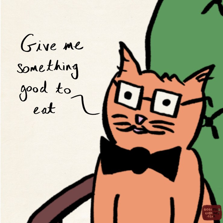 You, too, may rest assured: everything you scribble in your little notebook, everything you so much as daub over the back of a napkin, will one day find a home here in the Oogazoid Library…in one of its endless caverns, on one of its endless shelves, amongst countless other orphaned works, being pored over (and dribbled on) by an oogazoid.