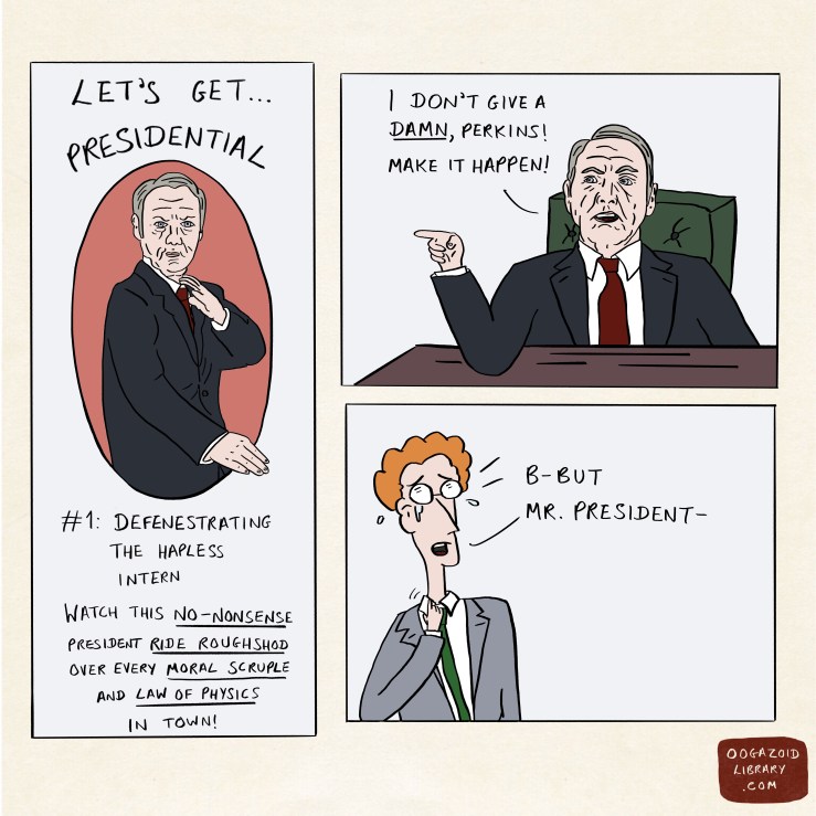 Again, according to the oogazoid Horace (who knows a lot about human TV for an oozing alien), ‘This is basically what happens in every episode of House of Cards.’