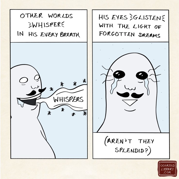 There are many mysterious pools in the library, of course, but whether they have fish in them is anyone’s guess. I haven’t dared to investigate them too closely yet. They whisper at me as I pass…and sometimes…sometimes they giggle. What could that mean?’